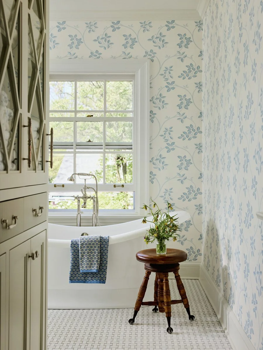 Originally envisioned as an all-white space, the Knightley kitchen took on a richer identity when the homeowner fell in love with At Ease, Soldier Green: a soft, neutral green with historic resonance. The result is a serene yet stately kitchen that honors the Georgian architecture of the home while bringing in a fresh, layered palette.